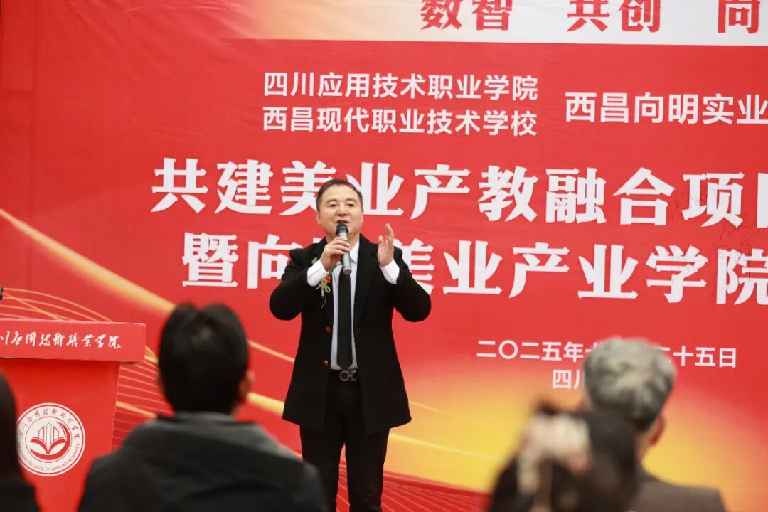 2025年12月25日,四川应用技术职业学院与西昌向明实业有限责任公司共建美业产教融合项目开工典礼暨向明美业产业学院揭牌仪式,在学校隆重举行。活动以“深化产教融合・赋能美业未来”为主题,来自中国美发美容协会党支部书记、会长唐德高,西昌向明实业有限责任公司董事长向明,名伽集团董事长施东坪,以及四川应用技术职业学院党委书记、省政府督导专员马金华,党委副书记、校长蔡兵,党委副书记、纪委书记付祥,党委委员、党委宣传部部长、校长助理陈星等校领导共同出席仪式。西昌向明实业有限责任公司管理团队,运动与健康学院、各职能部门及学生代表共100余人参加活动。仪式由学校党委委员、党委宣传部部长、校长助理陈星主持。 蔡兵校长在致辞中表示,向明美业产业学院的成立是我校积极响应国家职业教育改革、深化产教融合的重要举措,也是服务区域美业经济发展、满足社会对高素质美业人才需求的关键一步。他强调,学校将全力支持产业学院建设,聚焦美业行业岗位需要,着力构建产教协同育人平台,努力培养兼具时尚审美与扎实技能的高素质应用型人才,推动教育链与产业链深度融合,为提升区域美业服务水平、促进消费升级与美好生活建设提供有力支撑。 向明董事长在致辞中表示,公司始终高度重视产教融合发展。未来,将依托四川应用技术职业学院优质的教育资源、师资力量和人才培养优势,与学校建立全方位、常态化的深度合作机制,共同推动校企合作走深走实。双方共建的“向明美业产业学院”将成为协同育人、服务地方美业高质量发展的关键平台。公司将充分整合行业资源、技术优势与市场经验,在专业建设、课程开发、实训基地建设等方面与学校紧密协作,以“高标准、高质量、高水平”为准则,全力打造省内美业产教融合的示范样板,并朝着“全国标杆”的目标稳步迈进,为美业持续输送更多高素质、高技能、复合型人才。 中国美发美容协会会长、党支部书记唐德高作为特邀嘉宾作了讲话,他高度肯定了四川应用技术职业学院与西昌向明实业有限责任公司探索的产教融合新模式。他指出,校企协同育人优势显著——既夯实学生文化素养根基,又通过严格规范的系统化教育塑造过硬职业品格;学校多元化、精细化的管理,帮助学生深刻理解职业教育的类型定位,为未来职业发展筑牢基础,真正架起了校企人才输送的“直通车”。唐德高强调,产教融合不仅为美业注入了深厚的文化底蕴,更承载着从业者的梦想与追求,有效激发行业内生动力,助力美业迈向规范化、高质量发展新阶段。最后,他深情寄语广大学子:珍惜这一优质培养平台,潜心钻研技艺、锤炼综合本领,努力成长为引领美业未来的高素质技术技能人才,用专业与热爱照亮行业发展之路。 与会领导和嘉宾共同为向明美业产教融合项目开工建设剪彩 学校党委副书记、校长蔡兵,西昌向明实业有限责任公司董事长向明为四川应用技术职业学院向明美业产业学院揭牌 “美业产教融合实训室和实训基地”项目将打造集“教学、实训、经营、科研、竞赛、职业技能培训与创业孵化、职教出海”于一体的多功能产教融合平台,在人物形象设计专业建设、高水平实训基地打造、学生高质量就业与创业等方面充分发挥校企双方优势,推动教育与产业深度对接,促进“教育链、产业链、人才链、创新链”四链有机融合。未来,四川应用技术职业学院与西昌向明实业有限责任公司将联合开展“美业+文旅”、“美业+康养”、“美业+宠物”、“美业+影视”和“美业+AI”等复合型人才培养,共建四川省示范性美业产教融合实训基地,力争建成四川省美业高技能人才培育高地和产教融合新标杆。 此次美业产教融合项目的落地,既是深入贯彻新时代职业教育改革精神、主动对接区域现代服务业发展需求的务实举措,也是推动“美业+”交叉融合、加快新兴方向专业建设的创新探索。在党建引领下,校企双方将携手构建集教学、实训、研发、服务于一体的美业产教融合新生态,不仅助力学生实现高质量就业与创业,更将为凉山州乃至攀西地区美业高质量发展注入新动能、贡献职教智慧。